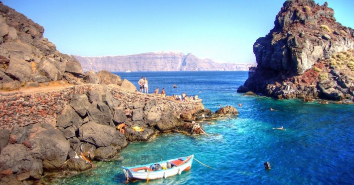 Santorini, insula aflata in sudul Marii Egee, la 120 de mile marine de Creta, atrage turistii mai ales datorita faimei potrivit careia in aceasta regiune s-a gasit legendara Atlantida. Aici se afla un sat-castel, Pyrgos, celebru pentru faptul ca are mai multe biserici (75) decat case. De altfel, se spune ca Santorini este locul in care 'sunt mai multe biserici decat case, mai mult vin decat apa, mai multi magari decat barbati'.