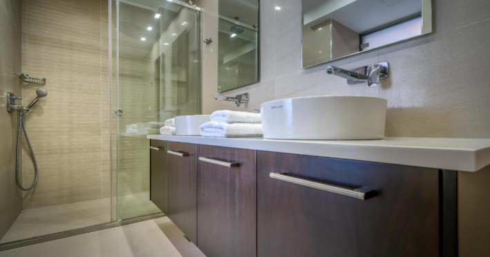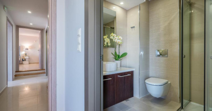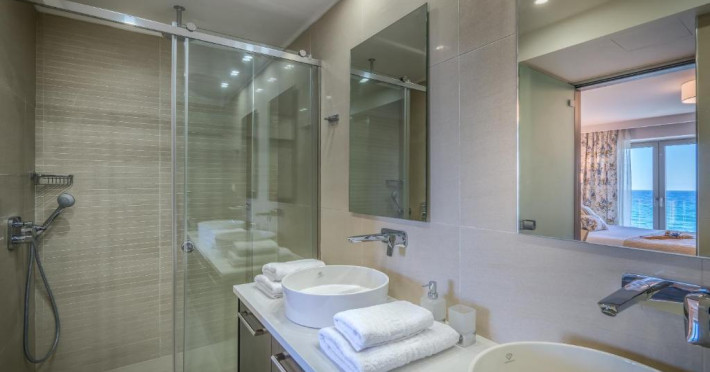 Camerele luminoase de la Perla Beach Villa sunt dotate cu aer condiționat și Tv cu canale prin satelit. În camere există baie cu cadă sau duș prevăzută cu foehn. Curățenia in cameră se face zilnic.