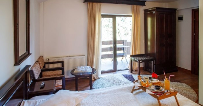 Toate camerele fiind dotate cu grup sanitar propriu, cablu TV, internet, TV-LCD, minibar, uscator de par,incalzire centrala si balcoane cu vedere spre paduri.