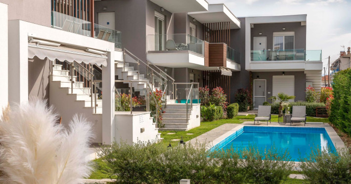 Right downtown, our new-born complex is ideal for those looking to be in the heart of the town close to the pedestrian street. The royal blue combined with the grey colour of the building melt perfectly with the blue waters of the pools! Green landscaped gardens and common pools that could keep you in for the whole day! Grab your swimming suit, Check In in those luxurious apartments, grab a regional wine and enjoy the night at the pool side with your beloved ones!