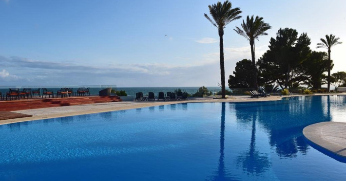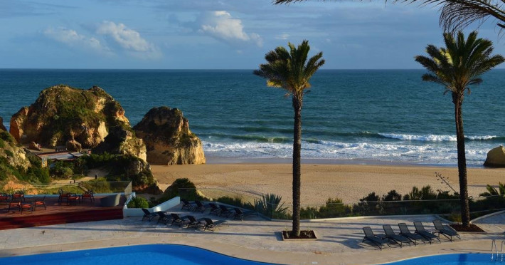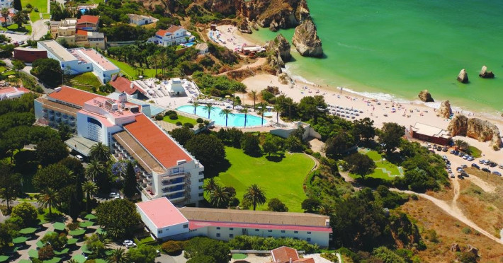 Localizare: La 2 km de centrul orasului Alvor si la 5 km de Portimao. Este situat pe o stanca cu vedere la plaja Tres Irmaos, una dintre cele mai bune plaje din Algarve cu nisip alb si apa linistita.Descriere: Situat direct pe plaja de nisip care se intinde pe aproximativ 2 km si inconjurat de 4 hectare de vegetatie, fiind locul ideal pentru relaxare si odihna. De asemenea pe o raza de 15 km se gasesc 8 terenuri de golf pentru amatori acestui sport.