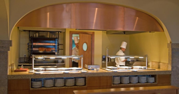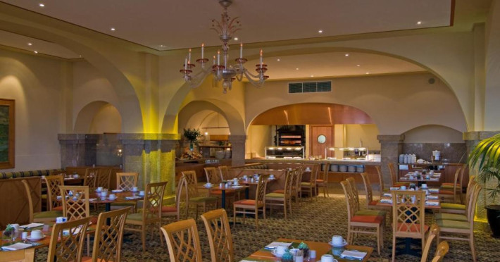 Oaspeții pot alege de la restaurantul Arcos, care servește mic dejun tip bufet și cină, Taverna Grill à la carte servește doar cina, Garden Pool servește in principal pranzul și gustări in timpul zilei, iar Pub este disponibil pentru pranz și cină, acesta din urmă și à la carte.