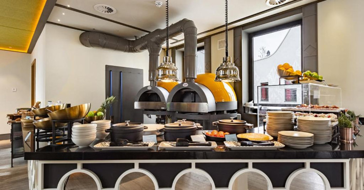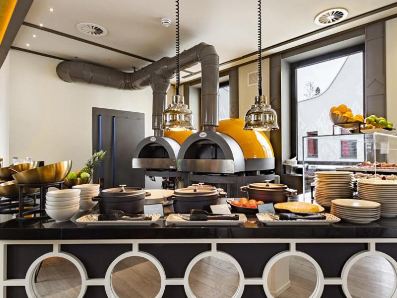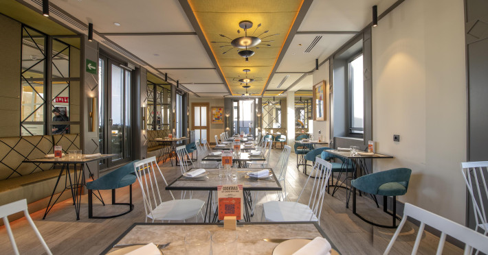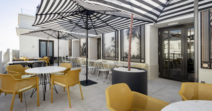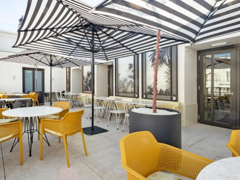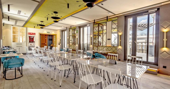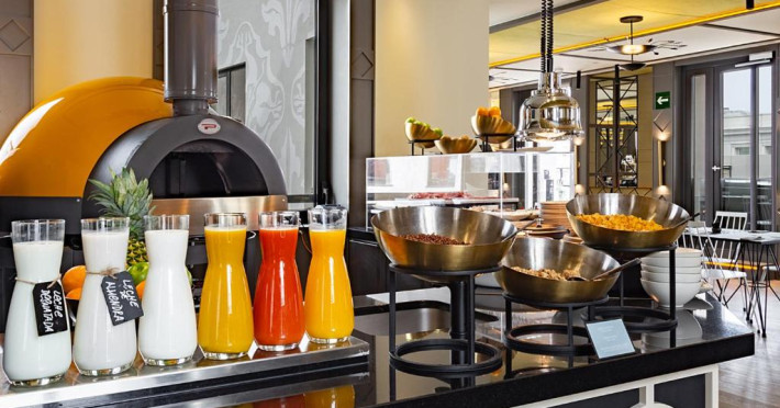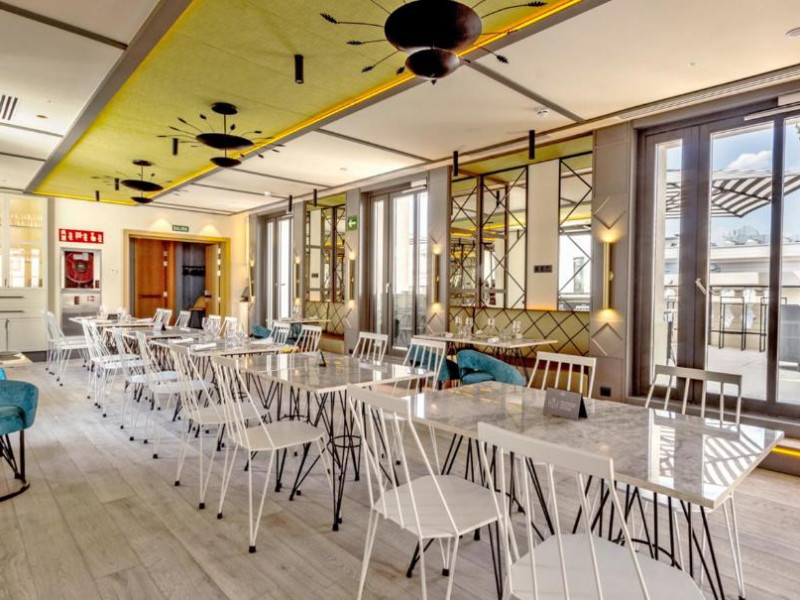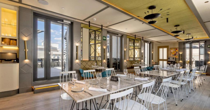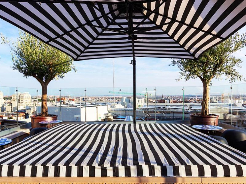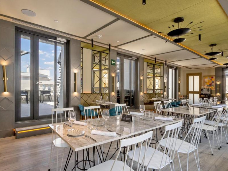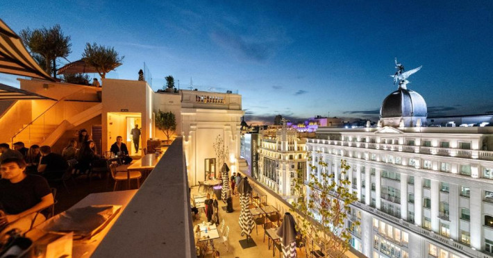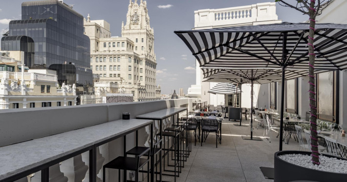 Oaspeții de la Pestana CR7 Gran Vía Madrid pot lua micul dejun pe terasa in aer liber, pot savura sau pizza napoletană autentică sau se pot bucura de un cocktail in timp ce admiră vederea panoramică la Madrid.