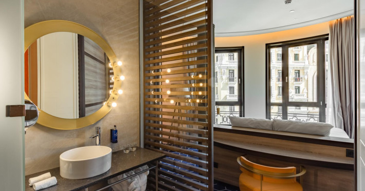 Pestana CR7 Gran Vía se află in Madrid și are bar, restaurant, centru de fitness și lounge comun. Facilitățile includ recepție cu program non-stop, room service și acces gratuit la internet WiFi in toate zonele proprietăți. Hotelul are camere de familie.