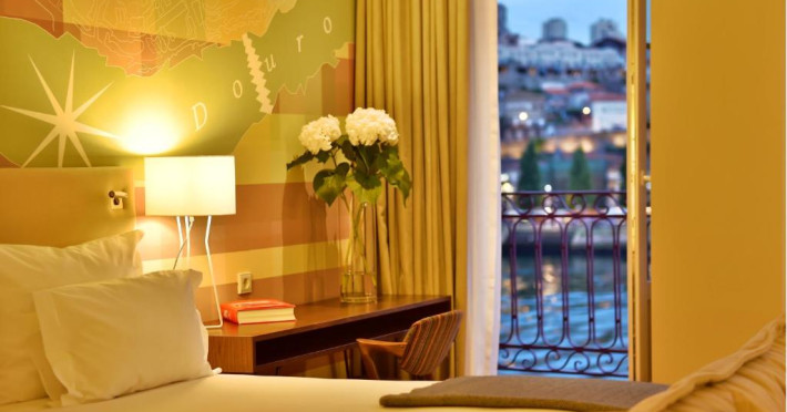 Pestana Vintage Porto Hotel & World Heritage Site de 5 stele este situat romantic de-a lungul raului Douro, chiar in Piața istorică Ribeira. Toate camerele din această clădire din secolul al XVI-lea au o baie spațioasă.