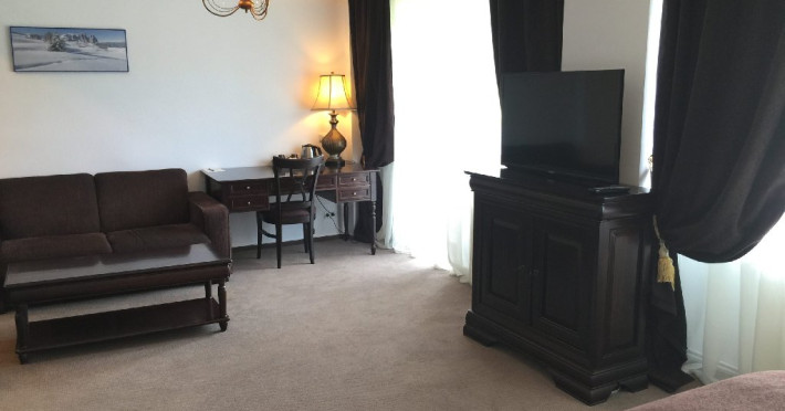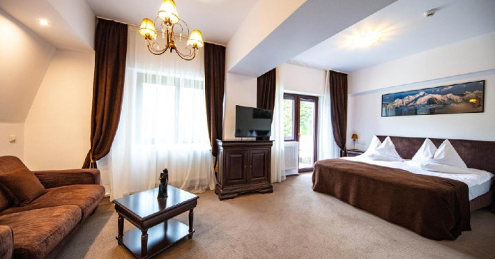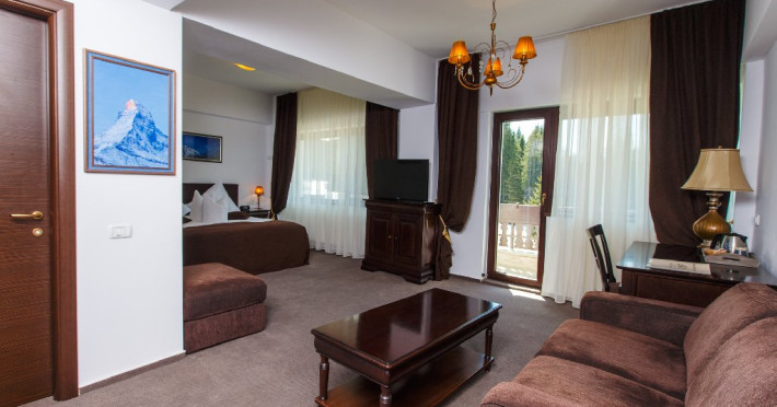Executive Suite cu vedere pe partea cu Babele / Executive Suite - In acest tip de camera se pot caza trei persoane adulte sau 2 adulti si 2 copii, avand suplimentar o canapea extensibila si o suprafata totala de 40 mp.
