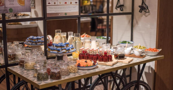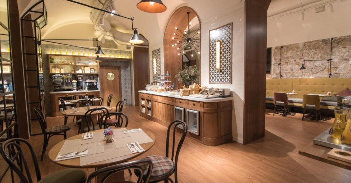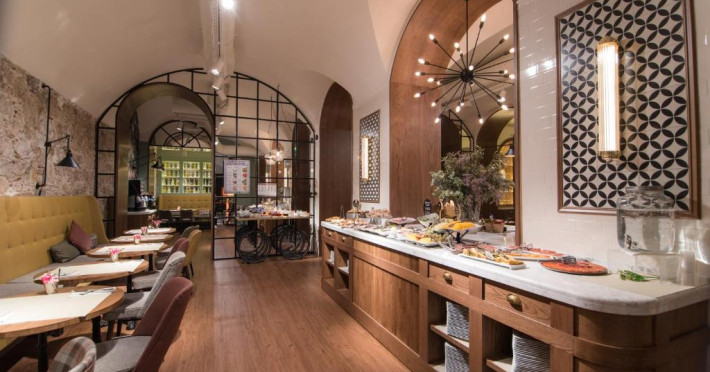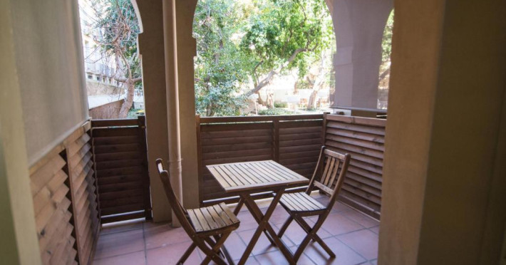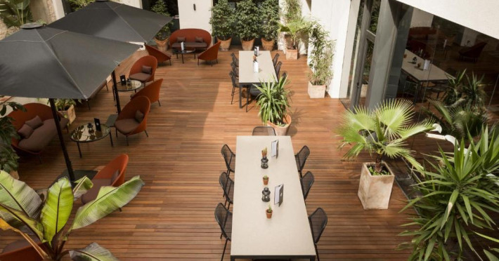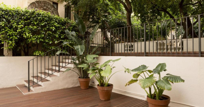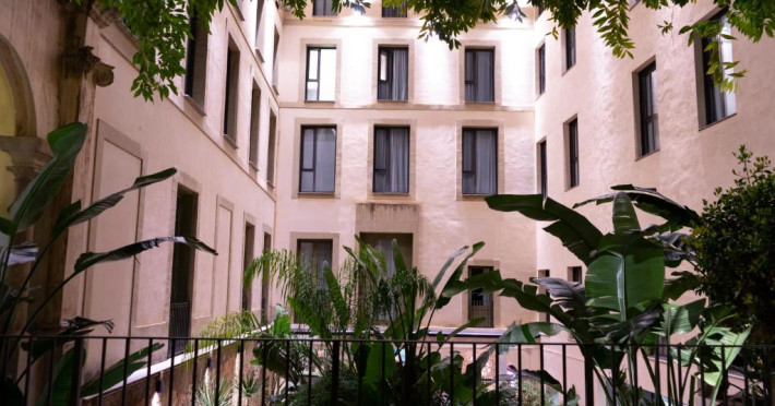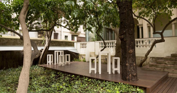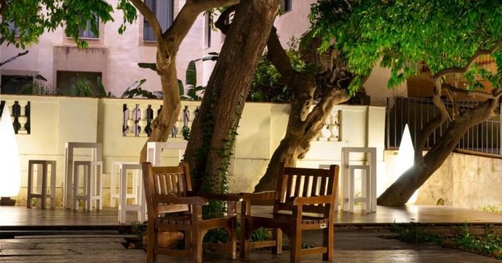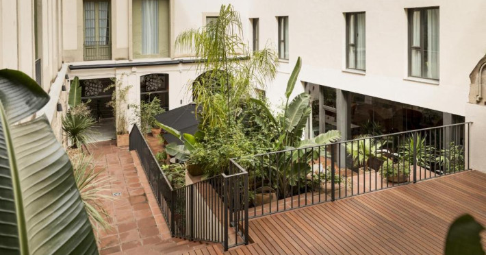 Barul hotelului este situat langă o curte privată și o grădină cu copaci sutici, un sit inclus in patrimoniul arhitectural al Barcelonei.