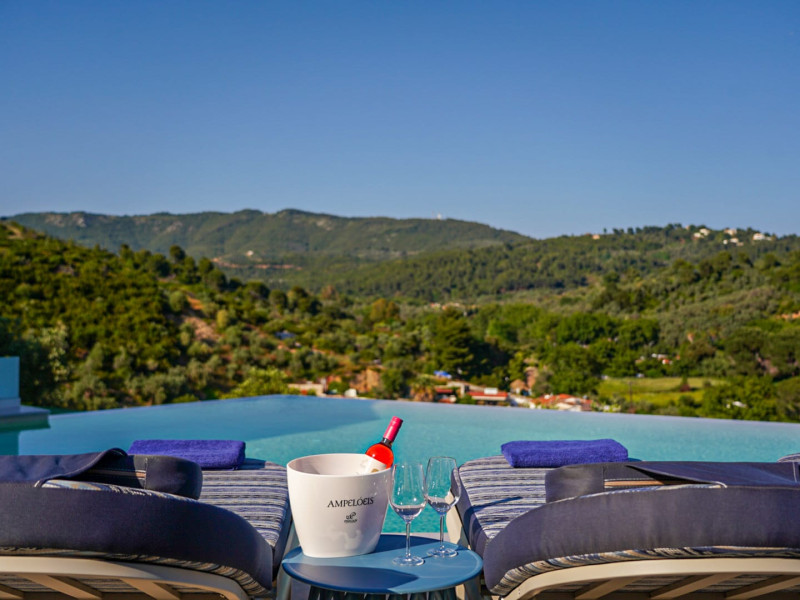 Petra Nera Skiathos is located in Agia Paraskevi area of Skiathos island, built on a small hill above the omonymous famous sandy beach of Agia Paraskevi, just 4 km from the well known Koukounaries beach and 7 km from the cosmopolitan Skiathos town.Agia Paraskevi beach is just 150 meters from our hotel and in the area there are many taverns, bars, super market, car/motorbike rental companies, as well as the traditional church of Agia Paraskevi.Just 50 m from our front office there is bus station #14 with regular buses (every 15 minutes) to Skiathos town and the rest of the southern beaches.The hotel consists of 3 buildings in a total of 43 units, whereof 38 rooms & 5 suites, all of them fully renovated in 2025. Some of them are provided with private jacuzzi or private pool. Ideal for couples, friends and families. Elegant yet spacious, Petra Nera Skiathos is generously equipped with everything you might be looking for during your stay. Hotel rooms offer stunning sea views.Petra Nera Skiathos is located in Agia Paraskevi area of Skiathos island, built on a small hill above the omonymous famous sandy beach of Agia Paraskevi, just 4 km from the well known Koukounaries beach and 7 km from the cosmopolitan Skiathos town.Agia Paraskevi beach is just 150 meters from our hotel and in the area there are many taverns, bars, super market, car/motorbike rental companies, as well as the traditional church of Agia Paraskevi.Just 50 m from our front office there is bus station #14 with regular buses (every 15 minutes) to Skiathos town and the rest of the southern beaches.The hotel consists of 3 buildings in a total of 43 units, whereof 38 rooms & 5 suites, all of them fully renovated in 2025. Some of them are provided with private jacuzzi or private pool. Ideal for couples, friends and families. Elegant yet spacious, Petra Nera Skiathos is generously equipped with everything you might be looking for during your stay. Hotel rooms offer stunning sea views.