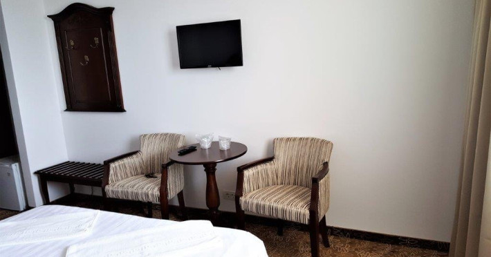 HOTEL PETROLUL este situat in centrul statiunii Eforie Nord, la 500 m distanta fata de plaja. Hotelul are 10 etaje si este compus din doua corpuri. In corpul A sunt disponibile camere duble de 3*. Are 158 camere duble 3* si 7 apartamente. Dotari si servicii Hotelul detine restaurant, parcare gratuita, bar lobby, sala de conferinte. Baza de tratament din cadrul hotelului Petrolul este data in functiune in anul 2011 si cuprinde cabinete si spatii pentru efectuarea urmatoarelor proceduri majore de tratament: hidrokinetoterapie de grup in bazin cu apa sarata provenita din lacul Techirghiol, masaj, cataplasme cu namol, parafina, bai galvanice, bai de plante, aerosoli cu apa sarata. De asemenea, se pot face si proceduri adiacente, precum: electroterapie (curenti de medie si joasa frecventa), magnetoterapie, ultrasunet, laser, kinetoterapie individuala si de grup. Nu se accepta animale de companie. Turistii care se prezinta cu biletul - tip de trimitere de la medicul de familie sau medicul specialist si cardul de sanatate primesc gratuit 3 proceduri de tratament pe zi, maxim 10 zile. Pentru copiii cu varsta pana la 18 ani se acorda gratuit 2 proceduri de tratament pe zi, in baza biletului de trimitere de la medicul de familie si a copiei certificatului de nastere/cartii de identitate. Tratamentul se efectueaza de luni pana vineri. Accesul la bazinul cu apa sarata este permis si sambata si duminica. Pentru seriile cu tratament zilele de intrare sunt duminica si luni. Servicii masa MASA: restaurant propriu - 340 locuri; In perioada 07.07 - 31.08 micul dejun se va servi in sistem bufet suedez, iar pranzul tot in sistem bufet suedez. La pachetele cu bufet suedez se intra cu pranzul, care se serveste in intervalul orar 13.00 - 15.00. Dotari camere Camerele sunt dotate cu TV, minibar, aer conditionat, baie cu dus. Toate camerele au balcon, iar o parte dintre ele au vedere spre mare. Facilitati copii In camera cu 2 adulti: - 0-4.99 ani beneficiaza de gratuitate la cazare cu mic dejun si pranz bufet suedez in perioada 01.07 - 31.08; - 5-9.99 ani achita 50% din valoarea micului dejun si la pranz in perioada 01.07 - 31.08; - copii cu varsta peste 10 ani achita integral mesele bufet. Pentru cazare: - 1 copil 0-4.99 ani beneficiaza de gratuitate, fara pat suplimentar; pentru al doilea copil 0-4.99 ani se va achita o taxa de utilitati de 30 lei/ zi. - pentru un copil cu varsta mai mare de 5 ani se va incasa suma de 30 lei/ persoana/ zi, fara pat suplimentar; - pentru 2 copii 0-11.99 ani se va asigura pat suplimentar contra cost sau se va achita o taxa de 30 lei/ zi/ copil, fara pat suplimentar; - peste 12 ani sunt considerati adulti si achita un loc integral; Pentru patul suplimentar se achita 40 lei/ zi si se acorda doar copiilor cu varsta pana in 18 ani si cu o greutate mai mica de 70 kg.