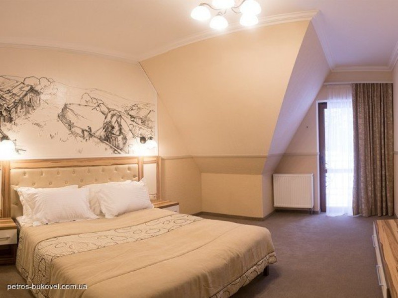 Localizare: Hotelul Petros ofera cazare in Bukovel, la 100 de metri de Vityag 5Facilitati hotel: Terasa, camera depozitare, gratar, internet Wi-Fi, inchiriere biciclete si parcare gratuita. Micul dejun se poate servi in restaurantul hotelului Amstel, legatura facandu-se printr-un coridor intre cele 2 hoteluri.