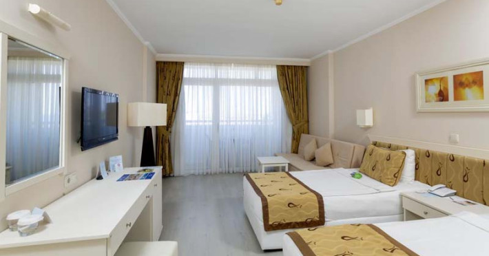Localizare: hotelul este situat pe plaja si la 65 km de Aeroportul Antalya. Facilitati hotel: piscina, acces imediat la plaja, camere de familie, WiFi gratuit inclus, transfer de la si/sau la aeroport, spa si centru de wellness, parcare gratuita, sala de fitness, bar, zona de plaja privata. Dotari camere: balcon, vedere la gradina, aer conditionat, baie privata, TV cu ecran plat, Terasa, Minibar, WiFi gratuit. Servicii contra cost: serviciu de transfer, serviciu de curatatorie si calcatorie, snorkelling, scufundari, facilitati sporturi nautice, pescuit, echipament tenis, biliard, masaj, sala fitness, spa si centru wellness, sauna, jacuzzi. IMPORTANT: Descrierea hotelului se bazeaza pe detaliile disponibile la momentul pregatirii tarifelor pentru sezonul turistic ce urmeaza a se desfasura si are caracter pur informativ. Hotelul poate aduce modificari de structura, denumiri camere, tip serivicii incluse/neincluse si altele, fara a notifica in prealabil. Pentru informatiile oficiale va rugam sa consultati website-ul hotelului.IMPORTANT