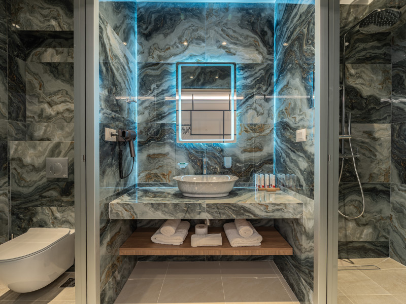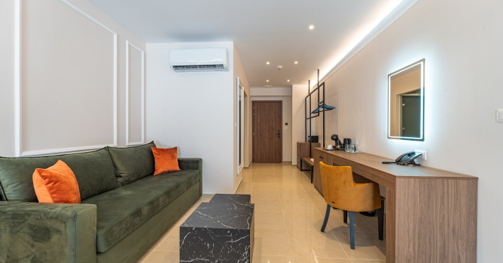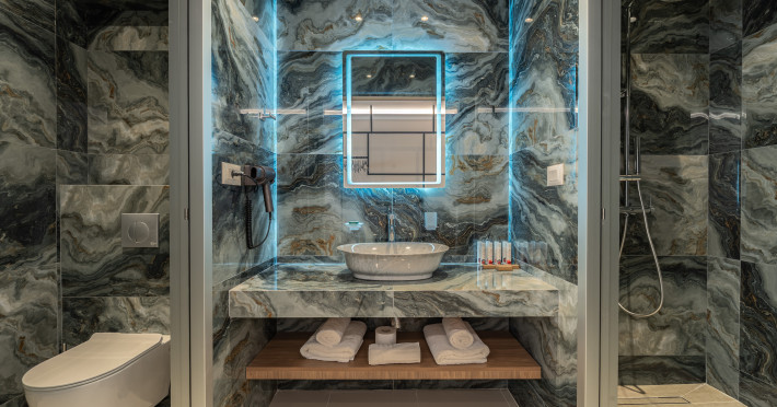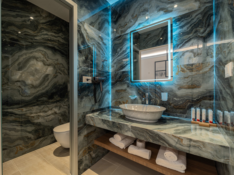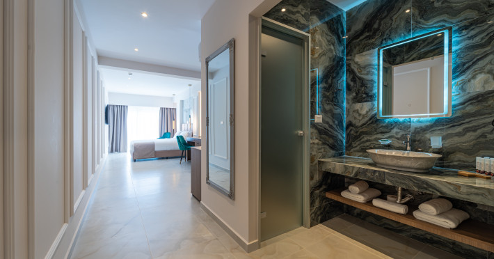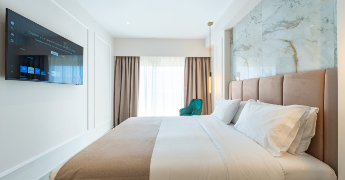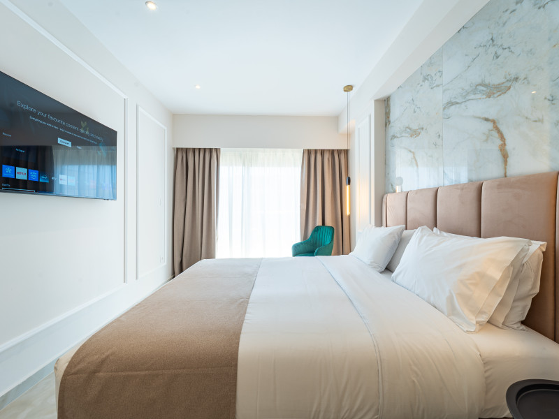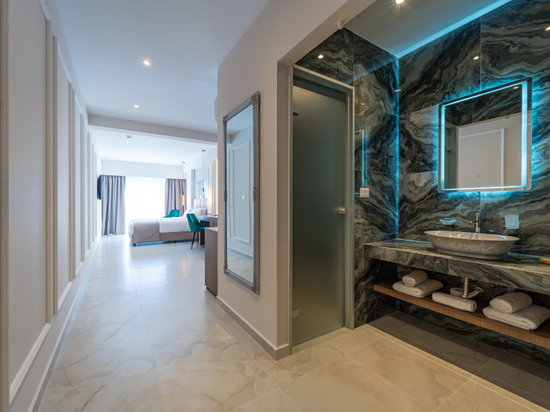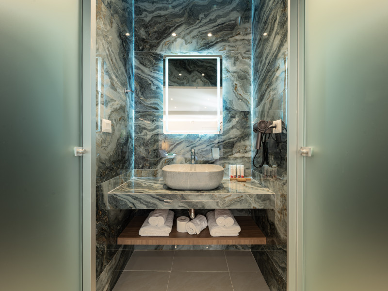 For a truly elevated experience, select one of our exclusive rooftop loft suites, located on the top floor. These luxurious spaces feature private jacuzzis and offer panoramic views of the Aegean Sea, the Medieval Old Town, and the modern cityscape of Rhodes – the perfect backdrop for unforgettable moments.
