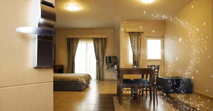 Facilitati camere: Hotelul Philoxenia cuprinde 33 de camere (18 garsoniere si 15 apartamente de familie).