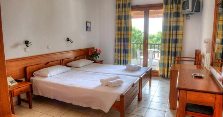 Înconjurat de pini și măslini și aproape de plajă, hotelul oferă facilităti moderne, camere dotate și confortabile și un restaurant cu gastronomie internatională și tradițional grecească. Hotelul reprezintă alegerea ideală pentru zilele dumneavoastră de răsfăț la malul mării.Facilitati camere