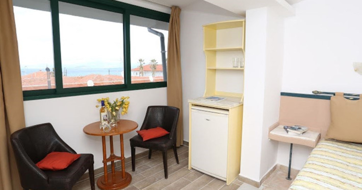 Sunt disponibile 80 camere. Unele camere au balcon cu vedere la mare sau la piscină. Oaspeții au la dispoziție serviciul de room service pentru a servi masa sau diverse băuturi. În camere există baie cu cadă sau duș ce are în dotare foehn și articole de toaletă gratuite. Camerele confortabile de la Philoxenia Spa Hotel sunt dotate cu pardoseală de gresie/ marmură, aer condiționat, Tv și seif. Oaspeții au acces gratuit la serviciul Wi-fi în camere. Curățenia in cameră se face zilnic. Anumite camere au cadă cu hidromasaj care asigură un plus de confort și răsfăț. Fiecare unitate de cazare are frigider. Proprietatea oferă camere pentru nefumători.