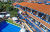 Surrounded by palm trees 250 m from Pefkohori Beach, Philoxenia Village Hotel-Studios features a swimming pool 20 m from shops. It offers air-cTHere is a pool bar , with fresh snacks and drinks. Airconditioned studios with free Wi-Fi and furnished balcony overlooking the pool and mountains of Chalkidiki. A kitchenette with cooking facilities is provided in all studios at the Philoxenia. Each has a fridge and a flat-screen TV with cable channels. Guests can relax on the sun terrace around the pool that features sun loungers and umbrellas. A childrenâs playground is also available. Restaurants and taverns are within a 3-minute walk. Afytos is 21 km away. All studios have 2 double beds (for max. 2+2 persons) , baby cot , possible but not space round in the room Parking is free around , not difficut to find free place. This way on you have direct access to famous beach bar of Kassandra and best beaches you have seen!nbsp; nbsp; nbsp;Datorita dinamicitatii domeniului disponibilitatea ofertelor se modifica de la un moment la altul. De aceea ofertele sunt valabile in limita locurilor disponibile. Agentia nu este responsabila pentru eventualele neconcordante care pot aparea intre informatiile privind tarifele si alte detalii din site si informatiile primite in agentie. In aceste cazuri vor avea prioritate, intotdeauna, informatiile primite in agentie.