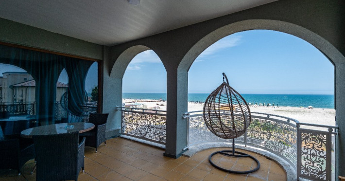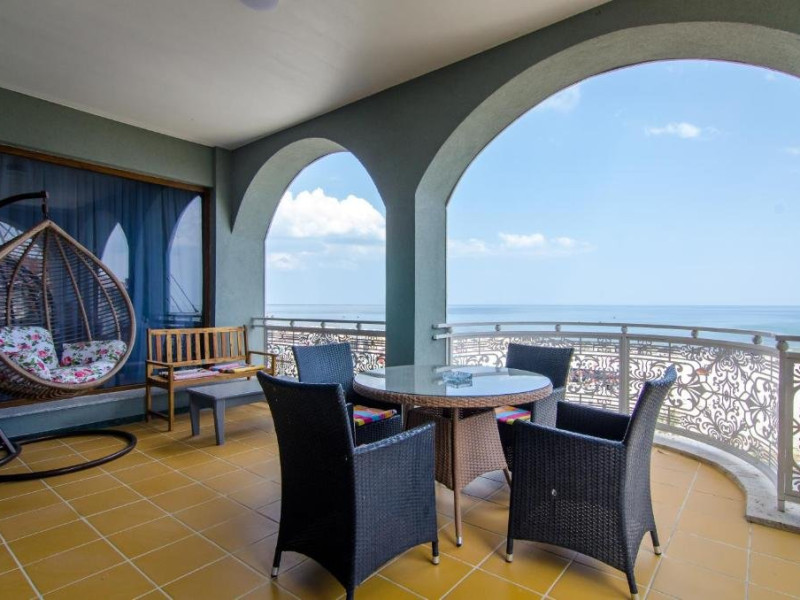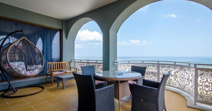 Cea mai spectaculoasa varianta, de aproximativ 50 m2. Dispune de un balcon larg, cu priveliste panoramica asupra marii, si un interior sofisticat, decorat cu accente de lux. Zona de relaxare este generoasa, iar baia are cada, dus si dotari premium. Aceasta suita ofera combinatia ideala intre spatiu, intimitate si rafinament, fiind destinata celor care cauta o experienta de top.