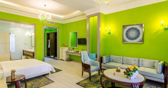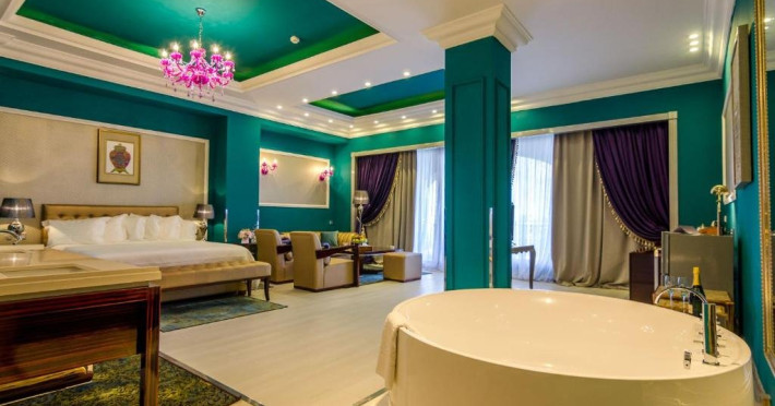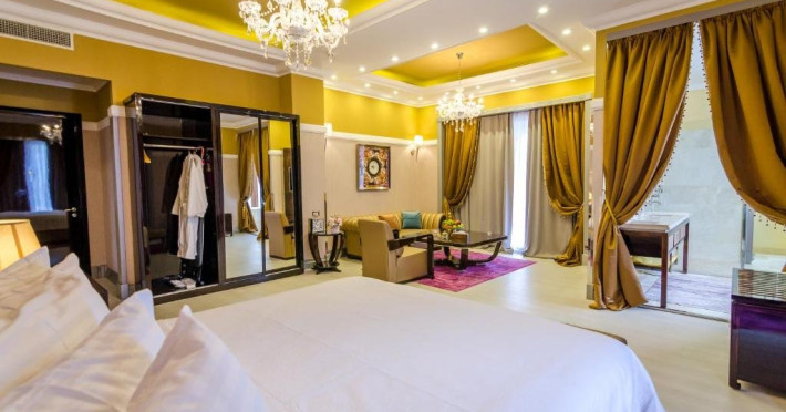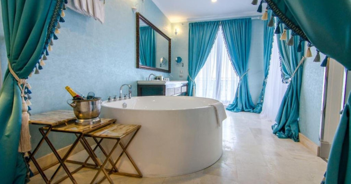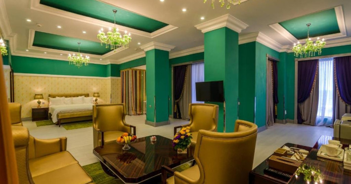 In serile in care doriti s v relaxati in camer, o puteti face pe canapeaua confortabil si in acelasi timp plin de eleganta din living. Suita este dotata cu pat matrimonial, 1 canapea si 2 fotolii, baie cu dus si cada, minibar, internet WiFi, TV LCD, seif, aer conditionat, telefon, uscator de par, balcon cu vedere laterala spre mare. Are o suprafata de aproximativ 60mp.