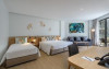 The hotel Phuket Emerald Beach Resort is located around 15 km from the city centre. There is a 24h shuttle between the hotel and the airport 24h a day. The hotel is equipped with a 24h reception (check-in is possible around the clock), a lobby, Wi-Fi, internet access, a lift, a first aid kit as well as a TV lounge with satellite TV. In the outdoor area you will find a garden as well as a supervised pool (open all year), where sun loungers and pool towels are available for free. There is also a children's pool. Furthermore, you can relax outdoors on a terrace. You can store your valuables in the safe, and your luggage in the hotel`s storage room. For the young hotel guests there is a playground. There is also a laundry service. For your comfort the hotel page will ensure you are looked after. In your hotel, a lot of focus is placed on sustainability. This includes among others the hotel`s own recycling bins. That is why the hotel Phuket Emerald Beach Resort was also awarded a sustainability certificate. The hotel requires that all guests pay a deposit upon arrival. Euro/Master Card and Visa are accepted as means of payment. Catering Breakfast is offered from the buffet. Lunch and dinner are served as a set meal or à la carte. All Inclusive Light includes beer. For the meals, there are a restaurant with terrace (vegetarian dishes) and the pool bar. The drinks menu of the hotel includes water, soft drinks, coffee and tea, beer and wine. You can take part in the cooking classes offered by the hotel during your stay. Distances
