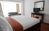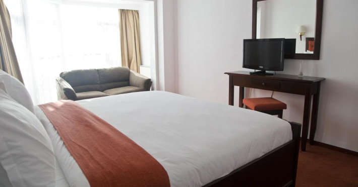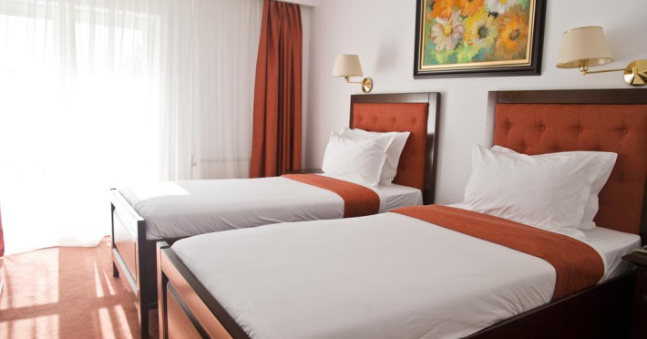 This hotel is located only a few steps from the resort centre, the bus stop and the ski lift. The city of Brasov lies approximately 15 km away. Renovated in 2003, this ski and conference hotel comprises a total of 186 rooms. Facilities on offer include a reception desk manned around the clock, a currency exchange facility, a restaurant, a bar, and modern conference facilities suitable for all types of event. There are parking spaces outside available for those arriving by car (charges apply). The elegant rooms all come with an en suite bathroom with hairdryer. In addition, central heating, a direct dial telephone, cable TV, and a minibar are also included in all accommodation units as standard. Leisure options include an indoor swimming pool. Guests may also make use of the ski lift in the immediate vicinity (charges apply). Lunch and dinner can be taken à la carte. Bed Breakfast stays may be booked.Datorita dinamicitatii domeniului disponibilitatea ofertelor se modifica de la un moment la altul. De aceea ofertele sunt valabile in limita locurilor disponibile. Agentia nu este responsabila pentru eventualele neconcordante care pot aparea intre informatiile privind tarifele si alte detalii din site si informatiile primite in agentie. In aceste cazuri vor avea prioritate, intotdeauna, informatiile primite in agentie.