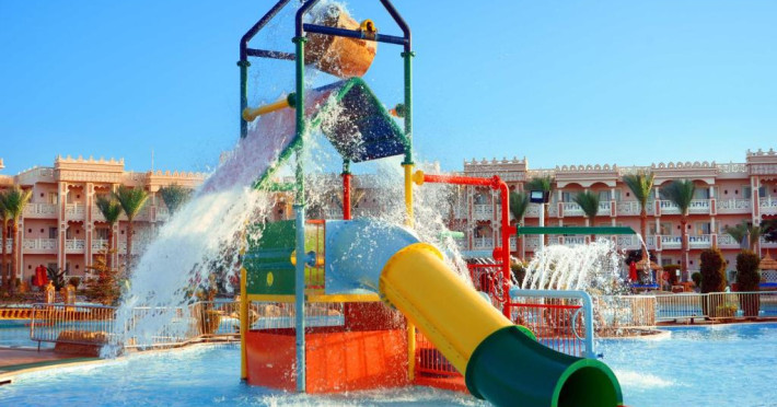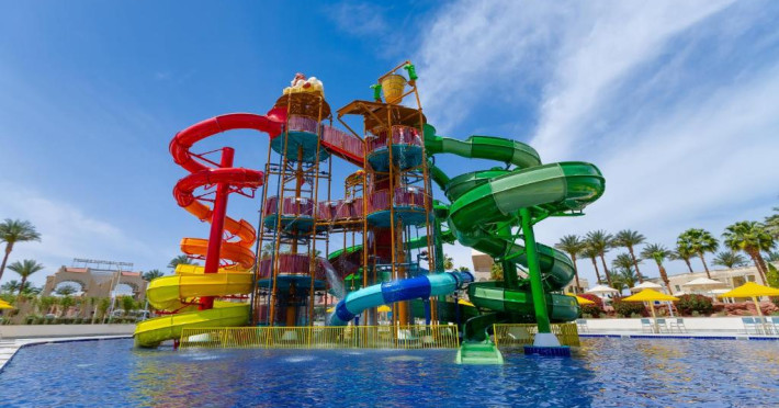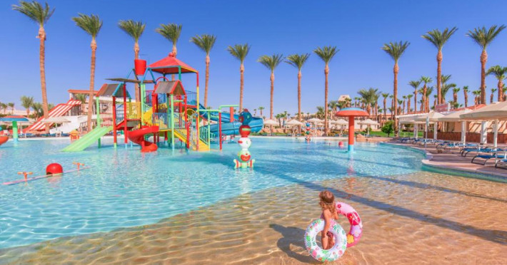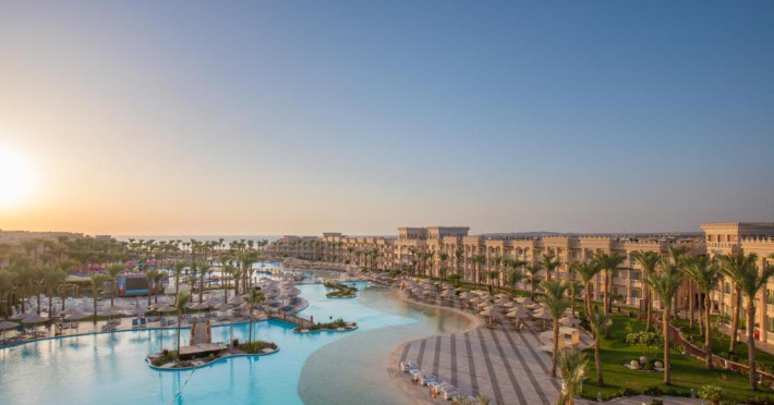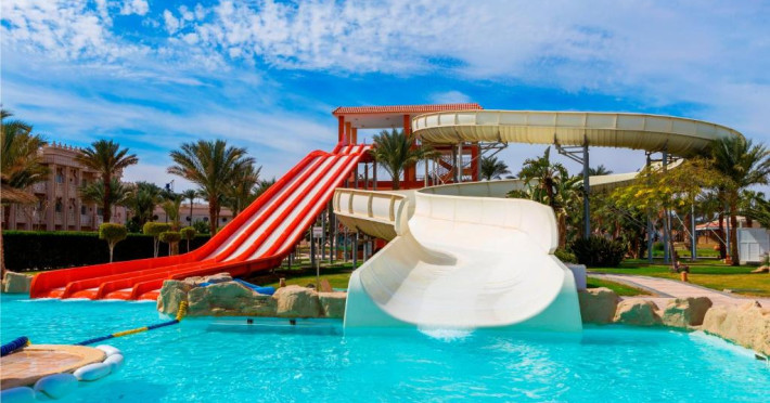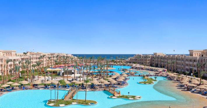 Situat in zona Hurghada, Pickalbatros Palace - Aqua Park oferă o experiență all inclusive memorabilă pe țărmul Mării Roșii. Resortul impresionează prin parcul acvatic propriu cu tobogane și piscine pentru toate varstele, fiind alegerea ideală pentru familiile cu copii.
