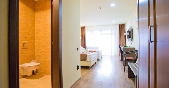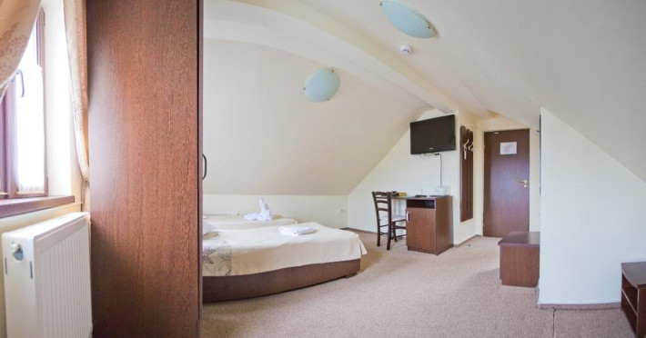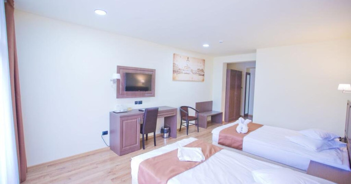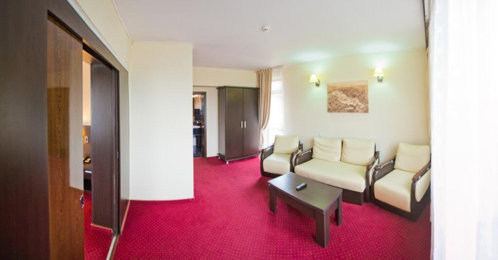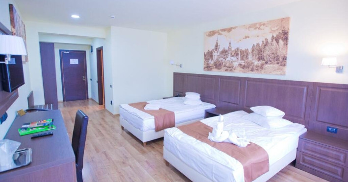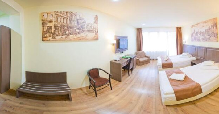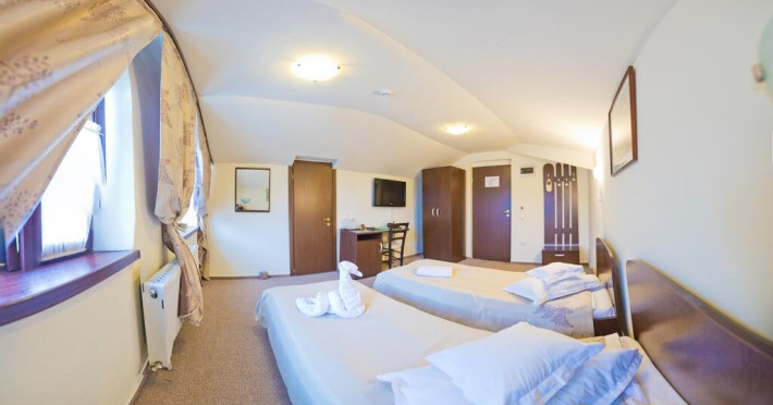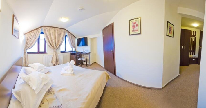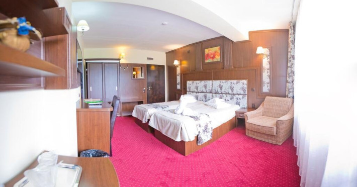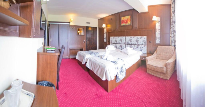 Camera dubla superioara- matrimoniala sau twin, 20 mp, balcon, minibar, seif, halat de baie, papuci de casa, uscator de par birou, etaje superioare accesibile cu liftul.
