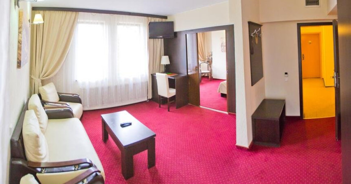 Apartament - 1 pat matrimonial si canapea extensibila, 25 mp, balcon, vedere la munte, vedere la oras, halat de baie, seif, birou, papuci de casa, telefon, uscator de par, etaje superioare accesibile cu liftul.
