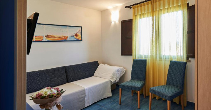 Camerele și suitele de la Pietrablu Resort au aer condiționat și pardoseală din gresie sau lemn. Fiecare are un TV cu ecran plat cu canale prin satelit si o terasă sau un patio cu vedere la mare sau la grădină.