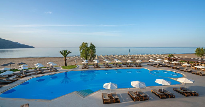 Pilot Beach Resort este un complex de 5 stele care se află pe malul mării, în Georgioupolis (Creta-Chania), și oferă plajă privată, 4 piscine în aer liber și piscină interioară. Facilitățile de la Pilot Beach Resort includ sală de fitness, teren de tenis și business centre. Pentru petrecerea timpului liber oaspeții au la dispoziție activități de agrement pe timpul zilei și programe de divertisment seara. Proprietatea are, de asemenea, servicii de recepție cu program non - stop, concierge și închirieri auto. Se oferă acces gratuit la internet Wi-fi în spațiile publice. Parcarea este disponibilă la proprietate gratuit.