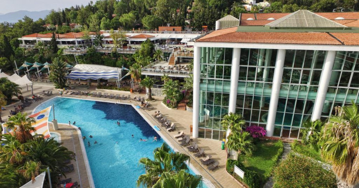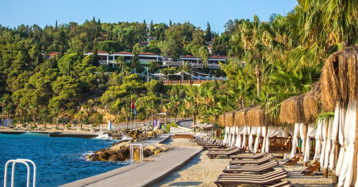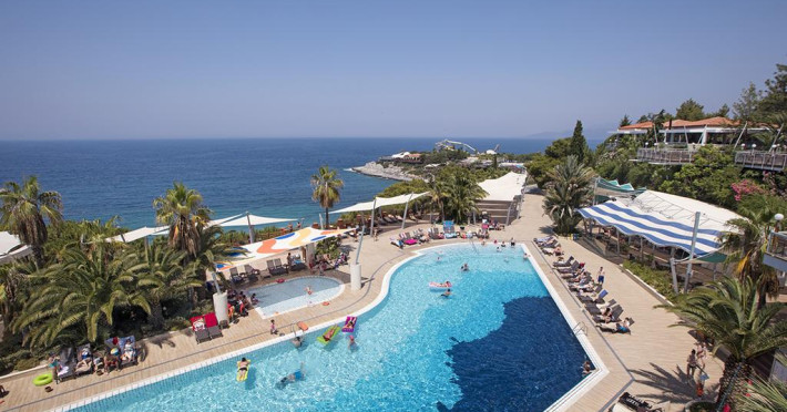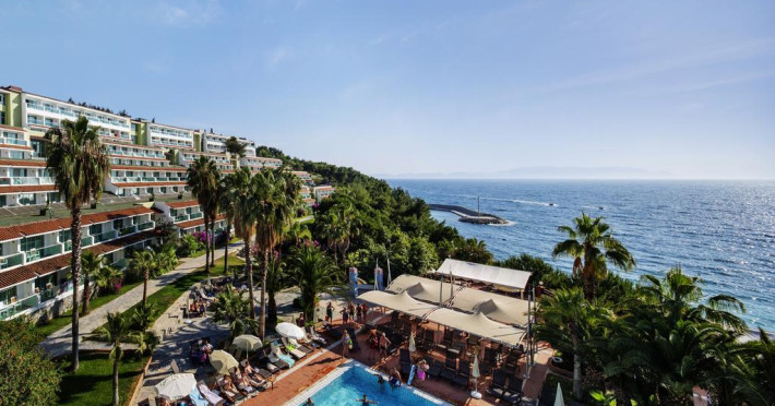 Pine Bay Holiday Resort este un complex de 5 stele care se află pe malul mării, în Kusadasi, și oferă plajă privată, 3 piscine în aer liber și piscină interioară. Facilitățile de la Pine Bay Holiday Resort includ sală de fitness și teren de tenis. Pentru petrecerea timpului liber oaspeții au la dispoziție activități de agrement pe timpul zilei și programe de divertisment seara. Proprietatea are, de asemenea, servicii de recepție cu program non - stop și închirieri auto. Se oferă acces gratuit la internet Wi-fi în spațiile publice. Parcarea este disponibilă la proprietate gratuit.