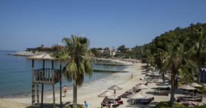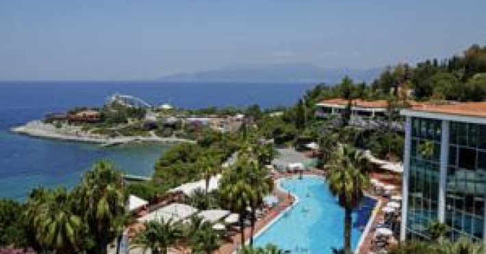 Pine Bay Holiday Resort se intinde pe o suprafata totala de 421.000 mp, fiind situat într-un superb golf. Resortul este compus dintr-un corp principal, bungalow-uri și terase care se întind pâna la malul marii.Descriere