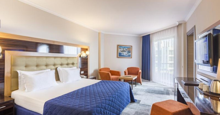 Beaches of golden sands that seem to stretch on forever, turquoise blue waters fading into cloudless horizons, deep green forests of invigorating cypress and monumental ancient testaments to time - these are just a few of the things the Turkish Riviera has to offer. With its enviable spot right on the coast in the middle of a lush golf paradise, the newly renovated Maritim Pine Beach Resort is the perfect starting point for discovering everything this exciting region affords. The hotel itself is nestled amidst a 120,000 sq.m. property that encompasses cypress forests, orange trees and olive groves. -------------------------Datorita dinamicitatii domeniului disponibilitatea ofertelor se modifica de la un moment la altul. De aceea ofertele sunt valabile in limita locurilor disponibile. Agentia nu este responsabila pentru eventualele neconcordante care pot aparea intre informatiile privind tarifele si alte detalii din site si informatiile primite in agentie. In aceste cazuri vor avea prioritate, intotdeauna, informatiile primite in agentie.