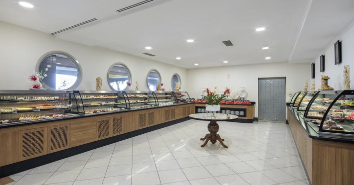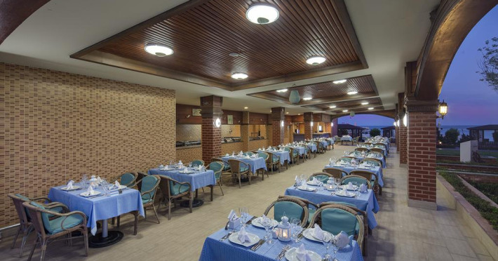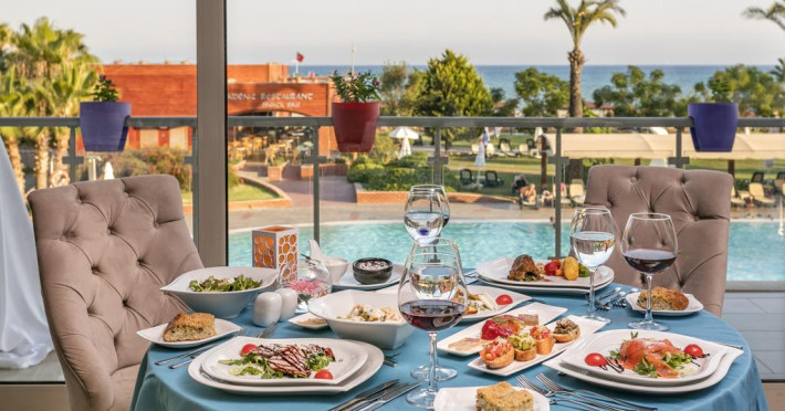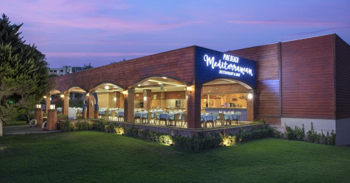 La Pine Beach Resort oaspeții au la dispoziție 4 restaurante unde pot savura mâncăruri delicioase, în stil bufet sau à la carte. Preparate din bucătăria internațională și turcească așteaptă să fie degustate în fiecare zi la micul dejun, prânz și cină. Masa poate fi servită atât în interior, cît si în aer liber, pe terasă, în funcție de vreme. 9 baruri, dintre care unul la piscină, sunt disponibile cu o ofertă variată de băuturi răcoritoare și alcoolice. În cadrul proprietății există și un snack bar care servește băuturi și gustări. Pentru cei cu anumite nevoi de nutriție, Pine Beach Resort oferă meniuri pentru diete speciale.