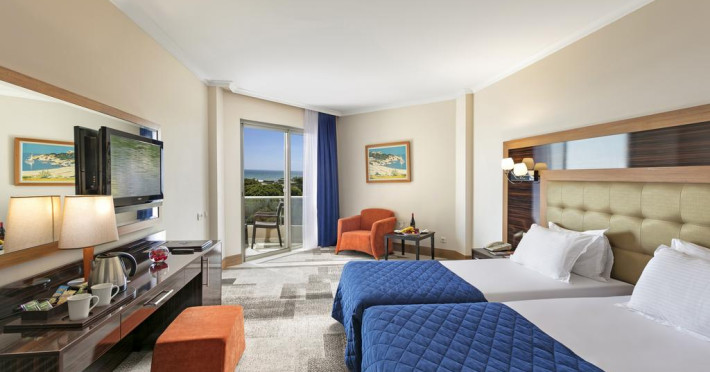 Pine Beach Resort este un complex de 5 stele care se află pe malul mării, în Belek (Antalya), și oferă plajă privată, piscină în aer liber și piscină interioară. Facilitățile de la Pine Beach Resort includ sală de fitness, teren de tenis și business centre. Pentru petrecerea timpului liber oaspeții au la dispoziție activități de agrement pe timpul zilei și programe de divertisment seara. Proprietatea are, de asemenea, servicii de recepție cu program non - stop, concierge și închirieri auto. Se oferă acces gratuit la internet Wi-fi în spațiile publice. Parcarea este disponibilă la proprietate gratuit.