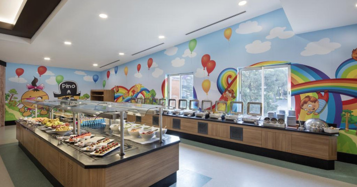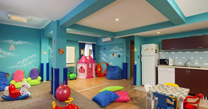 Proprietatea este o alegere potrivită pentru familiile cu copii. Cei mici se pot distra în aer liber la piscina pentru copii, prevăzută cu tobogan cu apă sau în locul de joacă special amenajat. Pentru orele toride cei mici pot opta pentru clubul amenajat la interior, unde există jocuri și programe de animație. Copiii au la dispoziție canale TV, cărți, dvd-uri, jocuri și puzzle-uri. Pentru cei mai mici Pine Beach Resort oferă cărucioare și servicii de babysitting.