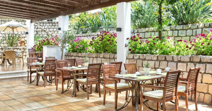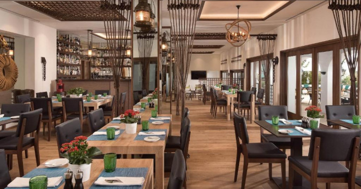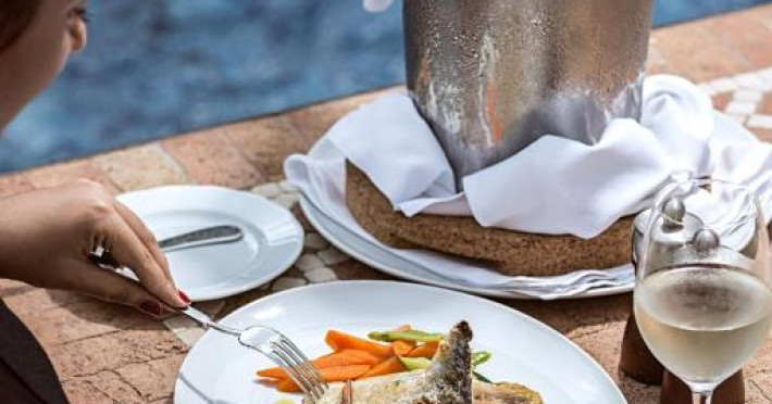 Complexul oferă o varietate amplă de restaurante și baruri, care servesc diferite mancăruri și băuturi locale și internaționale. Oaspeții pot lua masa la The Beach Bar sau la restaurantul O Grill și se pot relaxa in lounge-ul insorit, situat in varful dealului.