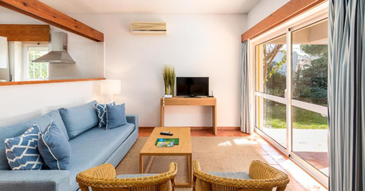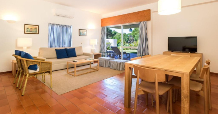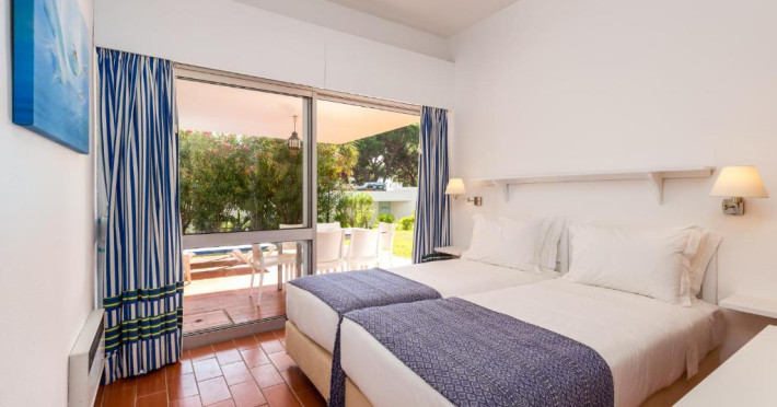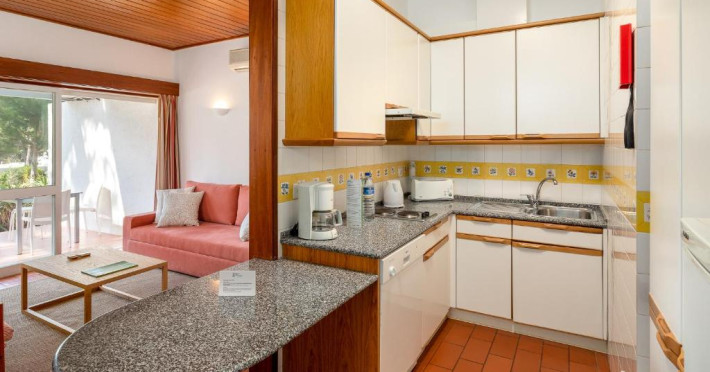 Toate apartamentele sunt orientate spre sud și au vedere la grădini sau la zona piscinei. Fiecare are o chicinetă cu cuptor cu microunde. Restaurantul Pin Mar oferă un serviciu de take-away. Restaurantul de la Pinhal Da Marina servește un meniu à la carte cu mancăruri tradiționale portugheze și internaționale, insoțite de o selecție de vinuri portugheze. Este disponibil și meniu pentru copii.