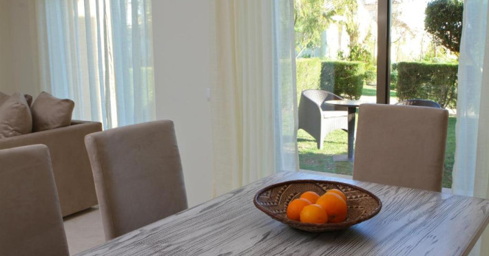 Fiecare are un decor modern și include o zonă de living/sufragerie care se deschide spre zona de grădină. In exterior, există o terasă mobilată, unde oaspeții se pot bucura de mesele pregătite in propria lor bucătărie complet utilată.