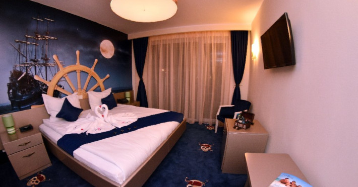 Camerele duble Bunk Bed sunt situate in corpul Blue la etajele 1, 2 si 3, sunt complet renovate in 2019-2020, au in dotare un pat matrimonial (180x190) si un pat suprapus destinat copiilor, sunt tematice (fiecare camera reprezinta stilul membrilor echipajului de pirati: capitan, navigator, tunar etc) si se vor adresa familiilor cu copii (capacitate camera 2 adulti si 2 copii). Camerele nu beneficiaza de vedere la mare.