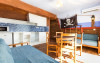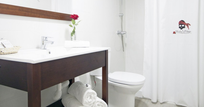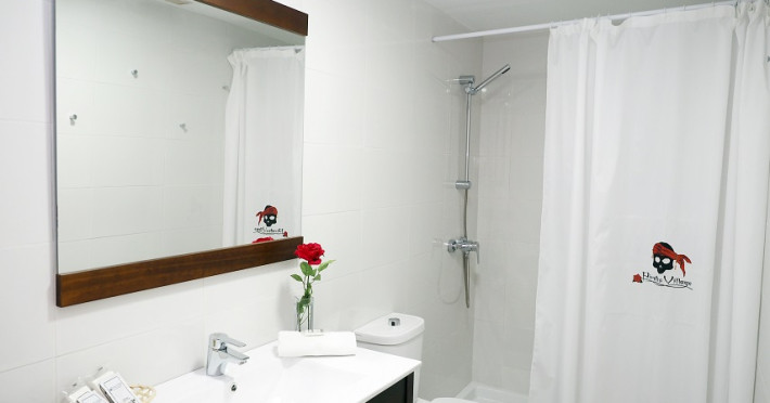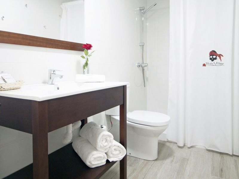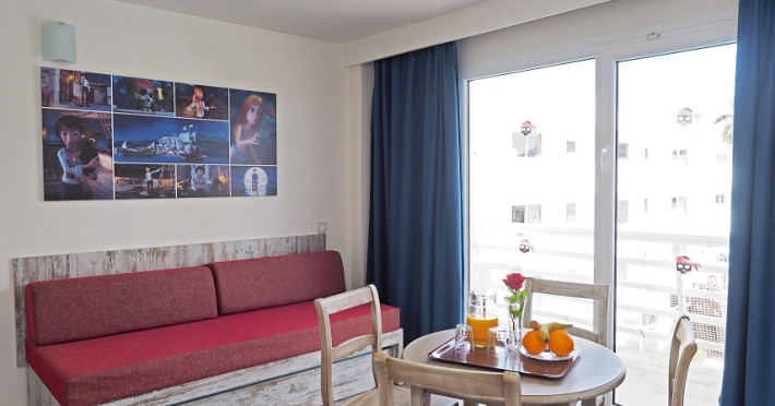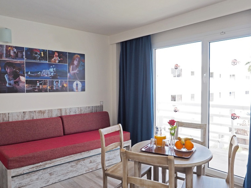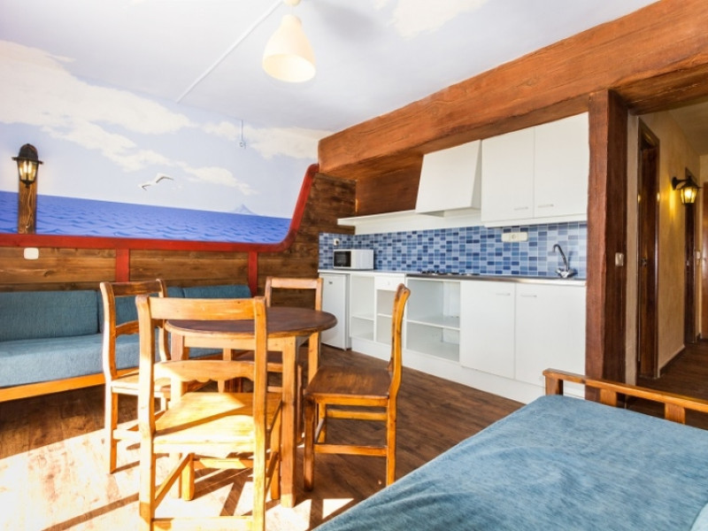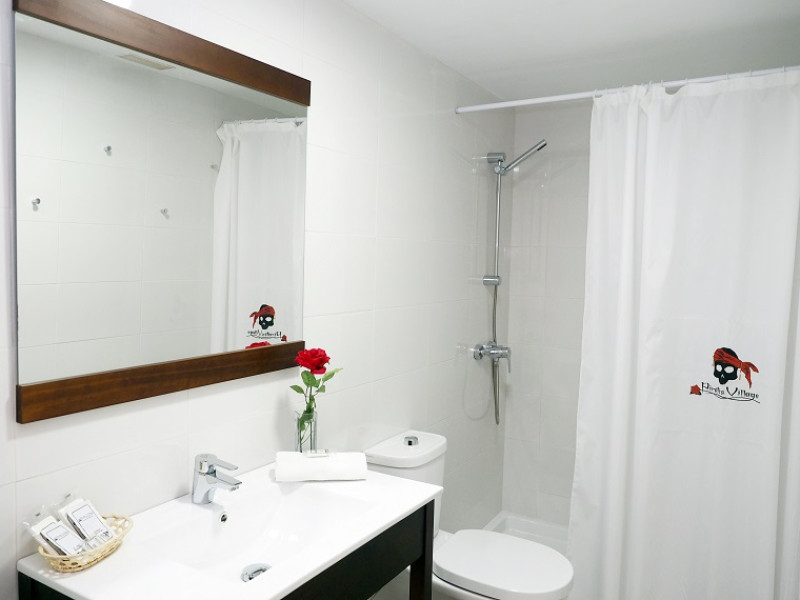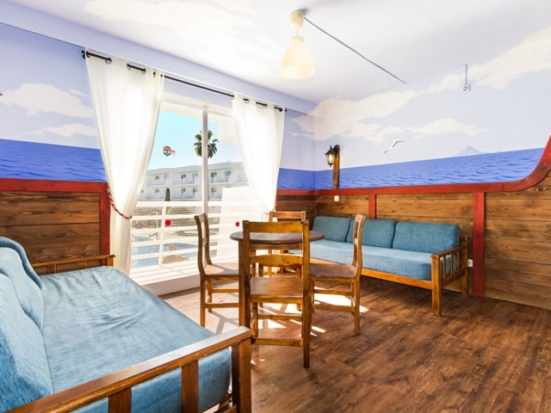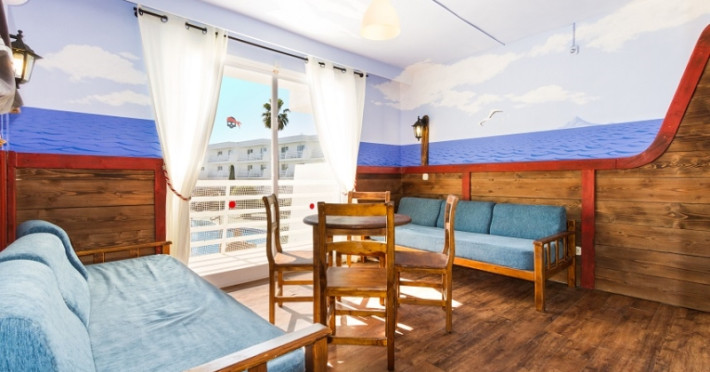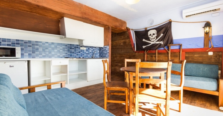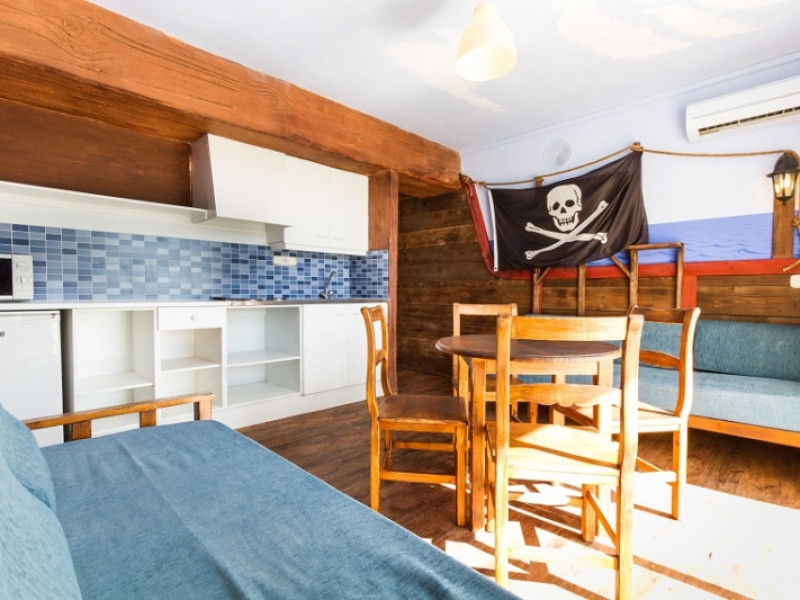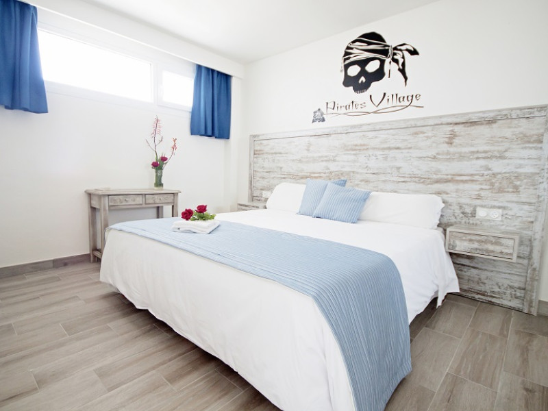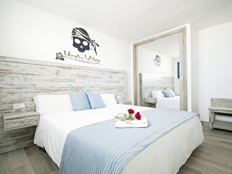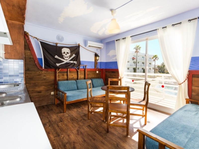 The apart hotel PIRATES VILLAGE APARTMENTS is located approx. 350 m from a beach. The hotel is equipped with a 24h reception (check-in is possible around the clock), Wi-Fi, parking spaces as well as a TV lounge. In the outdoor area of the property you will find a seasonally open pool, where sun loungers and sun umbrellas are available for free. For children there is also a children's pool with a water slide (type open slide). Furthermore, you can relax outdoors on the sun terrace. For your entertainment, the hotel offers a cinema. For very young guests, kid`s chairs can be provided). For the smallest children prams can be rented in the hotel. You can store your luggage in the hotel's storage room. To clean your clothes there is a laundry service (extra fee). If necessary, you can contact the medical centre. Guests at the accommodation can get a wake-up call from the hotel personnel. If you want to explore the holiday region, you can use the car and motorbike rental service close to the hotel (extra fee). Due to its barrier-free facilities , such as barrier-free entrances, the hotel is also suitable for wheelchair users. Catering As catering services the hotel offers all-inclusive and breakfast only. Breakfast is offered from the buffet. Lunch and dinner are also served from the buffet. Your physical well-being is catered for by the pool bar. Sports & Leisure For cyclists there is a bicycle rental. The wellness area offers massages (extra fee). Children can be looked after in the hotel`s own miniclub. For the entertainment of adults shows are organized in the evening. The hotel also offers a games room for adults.The apart hotel PIRATES VILLAGE APARTMENTS is located approx. 350 m from a beach. The hotel is equipped with a 24h reception (check-in is possible around the clock), Wi-Fi, parking spaces as well as a TV lounge. In the outdoor area of the property you will find a seasonally open pool, where sun loungers and sun umbrellas are available for free. For children there is also a children's pool with a water slide (type open slide). Furthermore, you can relax outdoors on the sun terrace. For your entertainment, the hotel offers a cinema. For very young guests, kid`s chairs can be provided). For the smallest children prams can be rented in the hotel. You can store your luggage in the hotel's storage room. To clean your clothes there is a laundry service (extra fee). If necessary, you can contact the medical centre. Guests at the accommodation can get a wake-up call from the hotel personnel. If you want to explore the holiday region, you can use the car and motorbike rental service close to the hotel (extra fee). Due to its barrier-free facilities , such as barrier-free entrances, the hotel is also suitable for wheelchair users. Catering As catering services the hotel offers all-inclusive and breakfast only. Breakfast is offered from the buffet. Lunch and dinner are also served from the buffet. Your physical well-being is catered for by the pool bar. Sports & Leisure For cyclists there is a bicycle rental. The wellness area offers massages (extra fee). Children can be looked after in the hotel`s own miniclub. For the entertainment of adults shows are organized in the evening. The hotel also offers a games room for adults.