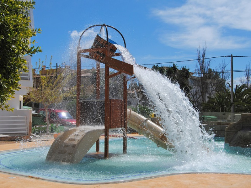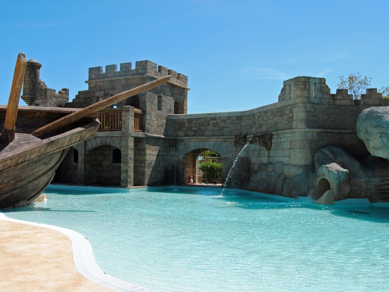 The apart hotel PIRATES VILLAGE APARTMENTS is located approx. 350 m from a beach. The hotel is equipped with a 24h reception (check-in is possible around the clock), Wi-Fi, parking spaces as well as a TV lounge. In the outdoor area of the property you will find a seasonally open pool, where sun loungers and sun umbrellas are available for free. For children there is also a children's pool with a water slide (type open slide). Furthermore, you can relax outdoors on the sun terrace. For your entertainment, the hotel offers a cinema. For very young guests, kid`s chairs can be provided). For the smallest children prams can be rented in the hotel. You can store your luggage in the hotel's storage room. To clean your clothes there is a laundry service (extra fee). If necessary, you can contact the medical centre. Guests at the accommodation can get a wake-up call from the hotel personnel. If you want to explore the holiday region, you can use the car and motorbike rental service close to the hotel (extra fee). Due to its barrier-free facilities , such as barrier-free entrances, the hotel is also suitable for wheelchair users. Catering As catering services the hotel offers all-inclusive and breakfast only. Breakfast is offered from the buffet. Lunch and dinner are also served from the buffet. Your physical well-being is catered for by the pool bar. Sports & Leisure For cyclists there is a bicycle rental. The wellness area offers massages (extra fee). Children can be looked after in the hotel`s own miniclub. For the entertainment of adults shows are organized in the evening. The hotel also offers a games room for adults.