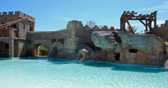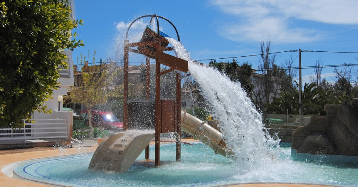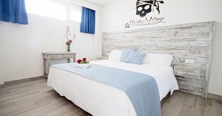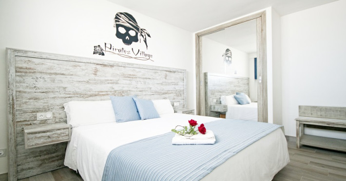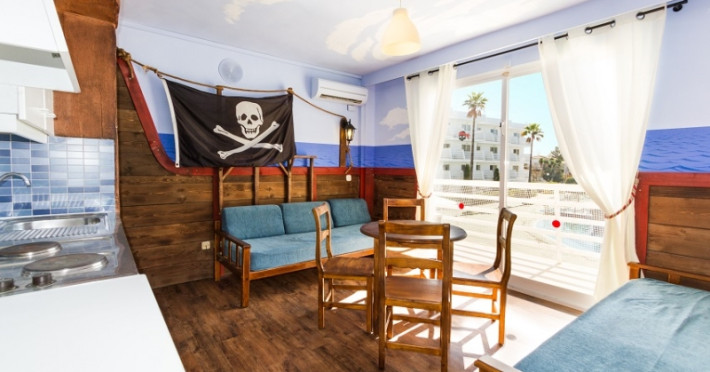 The apart hotel PIRATES VILLAGE APARTMENTS is located approx. 350 m from a beach. The hotel is equipped with a 24h reception (check-in is possible around the clock), Wi-Fi, parking spaces as well as a TV lounge. In the outdoor area of the property you will find a seasonally open pool, where sun loungers and sun umbrellas are available for free. For children there is also a children's pool with a water slide (type open slide). Furthermore, you can relax outdoors on the sun terrace. For your entertainment, the hotel offers a cinema. For very young guests, kid`s chairs can be provided). For the smallest children prams can be rented in the hotel. You can store your luggage in the hotel's storage room. To clean your clothes there is a laundry service (extra fee). If necessary, you can contact the medical centre. Guests at the accommodation can get a wake-up call from the hotel personnel. If you want to explore the holiday region, you can use the car and motorbike rental service close to the hotel (extra fee). Due to its barrier-free facilities , such as barrier-free entrances, the hotel is also suitable for wheelchair users. Catering As catering services the hotel offers all-inclusive and breakfast only. Breakfast is offered from the buffet. Lunch and dinner are also served from the buffet. Your physical well-being is catered for by the pool bar. Sports & Leisure For cyclists there is a bicycle rental. The wellness area offers massages (extra fee). Children can be looked after in the hotel`s own miniclub. For the entertainment of adults shows are organized in the evening. The hotel also offers a games room for adults.The apart hotel PIRATES VILLAGE APARTMENTS is located approx. 350 m from a beach. The hotel is equipped with a 24h reception (check-in is possible around the clock), Wi-Fi, parking spaces as well as a TV lounge. In the outdoor area of the property you will find a seasonally open pool, where sun loungers and sun umbrellas are available for free. For children there is also a children's pool with a water slide (type open slide). Furthermore, you can relax outdoors on the sun terrace. For your entertainment, the hotel offers a cinema. For very young guests, kid`s chairs can be provided). For the smallest children prams can be rented in the hotel. You can store your luggage in the hotel's storage room. To clean your clothes there is a laundry service (extra fee). If necessary, you can contact the medical centre. Guests at the accommodation can get a wake-up call from the hotel personnel. If you want to explore the holiday region, you can use the car and motorbike rental service close to the hotel (extra fee). Due to its barrier-free facilities , such as barrier-free entrances, the hotel is also suitable for wheelchair users. Catering As catering services the hotel offers all-inclusive and breakfast only. Breakfast is offered from the buffet. Lunch and dinner are also served from the buffet. Your physical well-being is catered for by the pool bar. Sports & Leisure For cyclists there is a bicycle rental. The wellness area offers massages (extra fee). Children can be looked after in the hotel`s own miniclub. For the entertainment of adults shows are organized in the evening. The hotel also offers a games room for adults.
