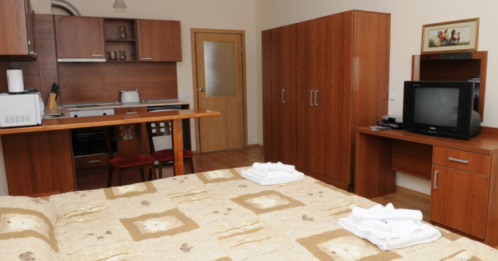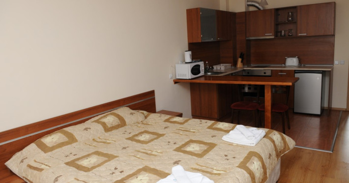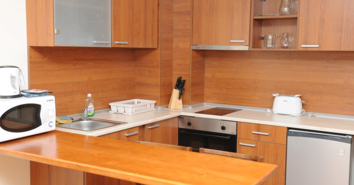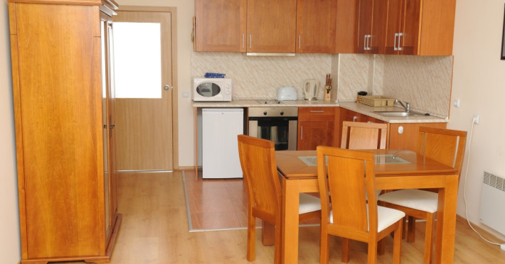 Oaspeţii îşi pot pregăti micul dejun şi alte mese şi le pot savura chiar pe balcon.