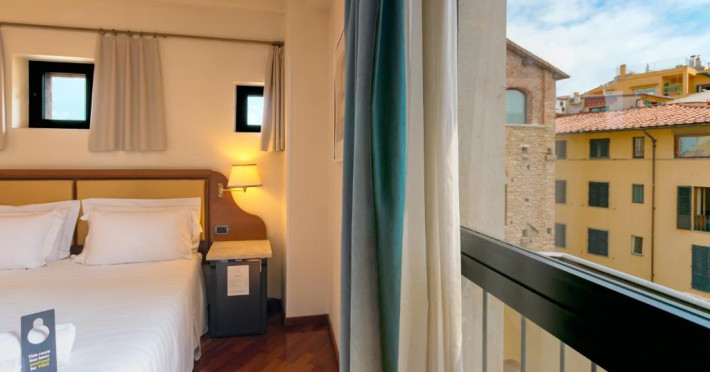 Camerele de la B&B Hotel Firenze Pitti Palace al Ponte Vecchio au ferestre cu vedere la raul Arno sau la zona orașului medieval din jur.