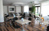 Pe durata sezonului estival, turistii se pot relaxa pe terasa.