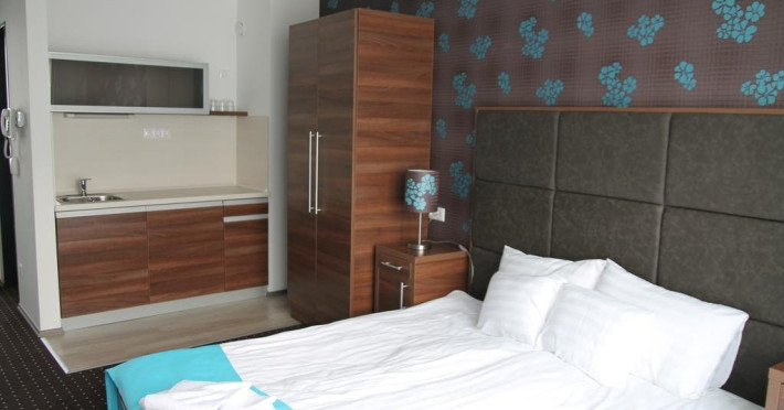 Camerele sunt dotate cu aer conditionat, kitchenette, TV satelit, mini-bar, baie privata cu cada sau dus, articole cosmetice, balcon.