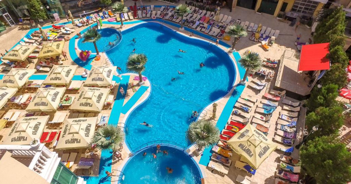 Hotelul se află la mai puțin de 100 metri de plajă, în centrul stațiunii Sunny Beach.