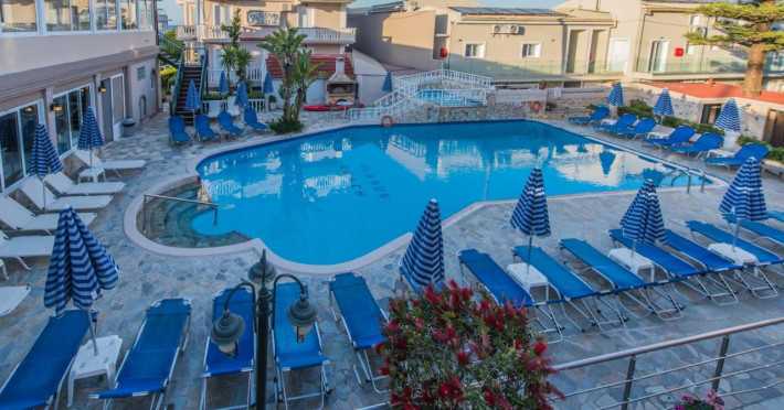Amplasată în Tsilivi (Zakynthos), la 400 m de plaja Tsilivi, Planos Beach oferă o piscină în aer liber, terasă cu șezlonguri și umbrele de soare și unități de cazare cu aer condiționat. Facilitățile de la Planos Beach includ și sală de fitness. Proprietatea are recepție cu program non - stop, unde clienții sunt întâmpinați cu ospitalitate în orice moment al zilei. Se oferă acces gratuit la internet Wi-fi în spațiile publice.