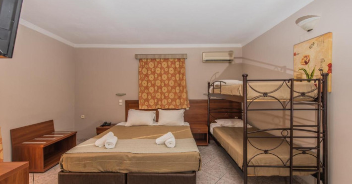 Camerele de la Planos Beach au în dotare aer condiționat și Tv. Fiecare cameră dispune de cană-fierbător. În camere există baie cu duș prevăzută cu foehn. Camerele au balcon cu vedere la mare sau la oraș. Curățenia in cameră se face zilnic.
