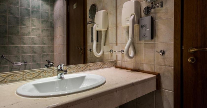 Cazare: cladire cu 5 etaje 4 lifturi 47 camere duble fara balcon (max. 2+1/3 persoane, 18m2) 84 camere duble cu balcon (max. 2+1/3 persoane, 18m2) 12 suite Junior (max. 2+2/3+1 persoane, 44m2). Majoritatea camerelor au vedere spre partie.